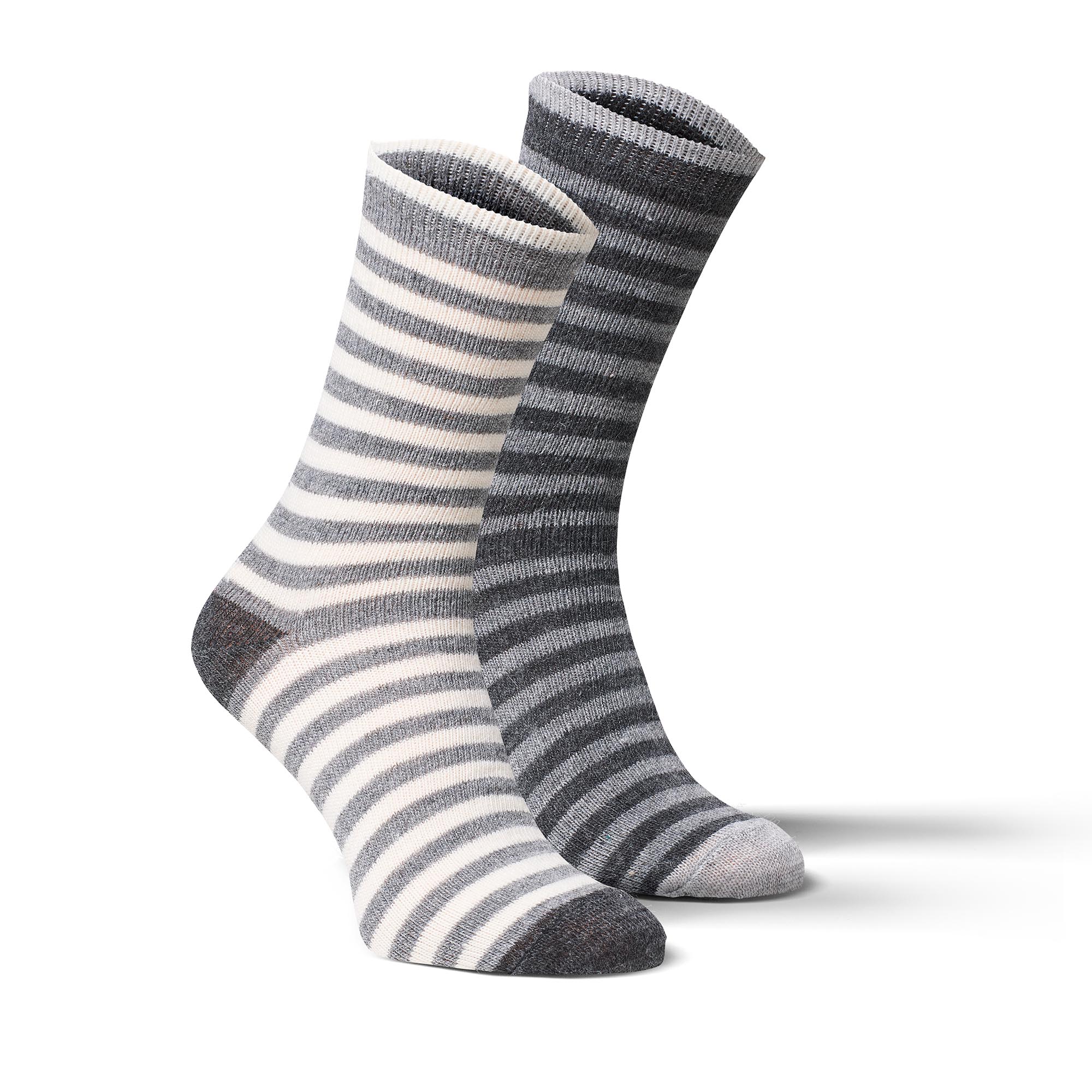 Kuschelige gestreifte Ringelsocken aus Alpakawolle im 2er-Pack (weiß/grau)